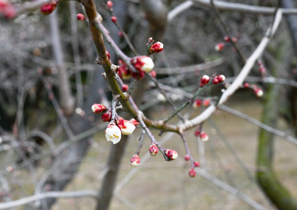梅畑には、まだつぼみをつけた木も多く見られ、これから満開を迎えるのが楽しみです。